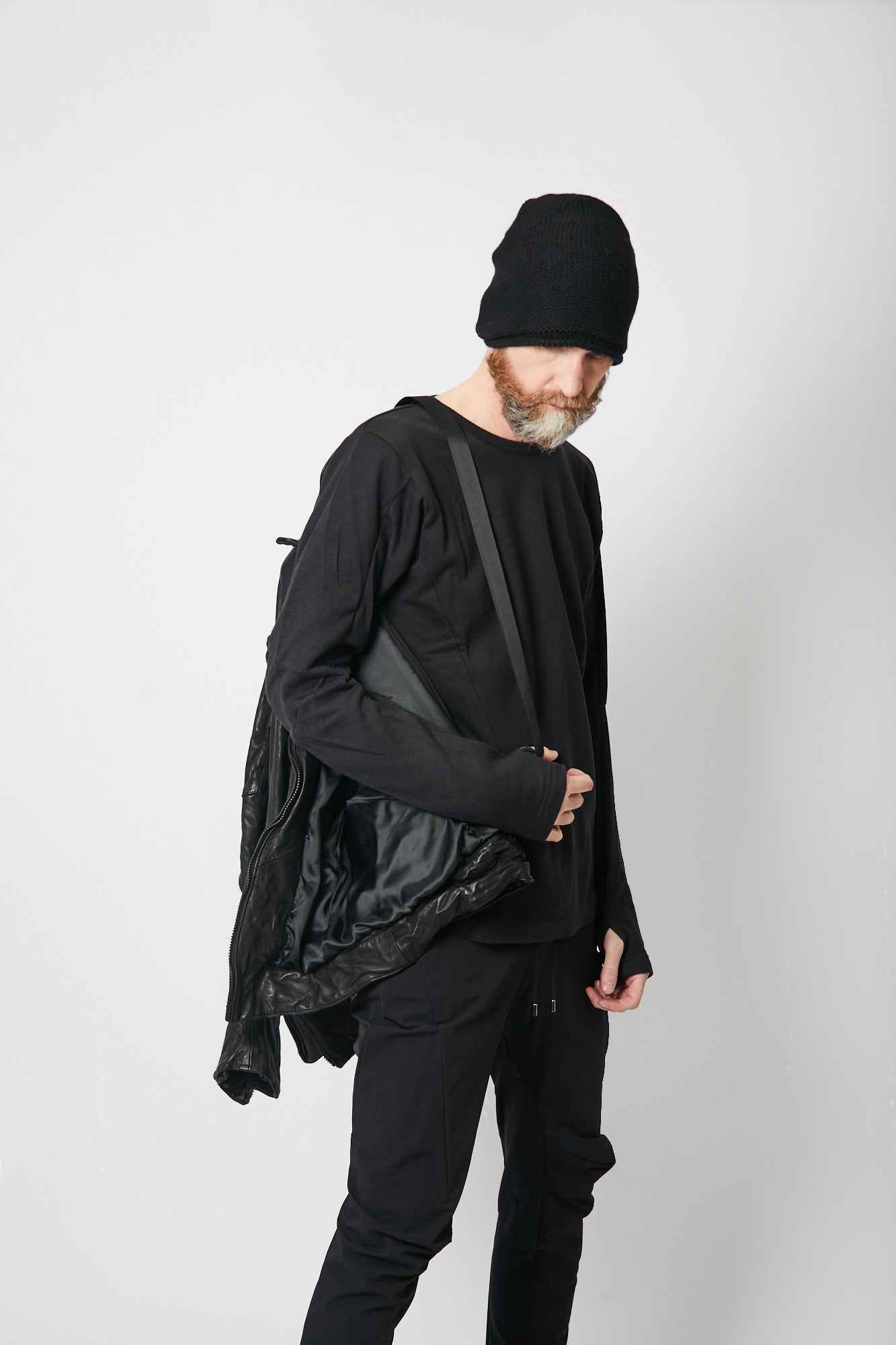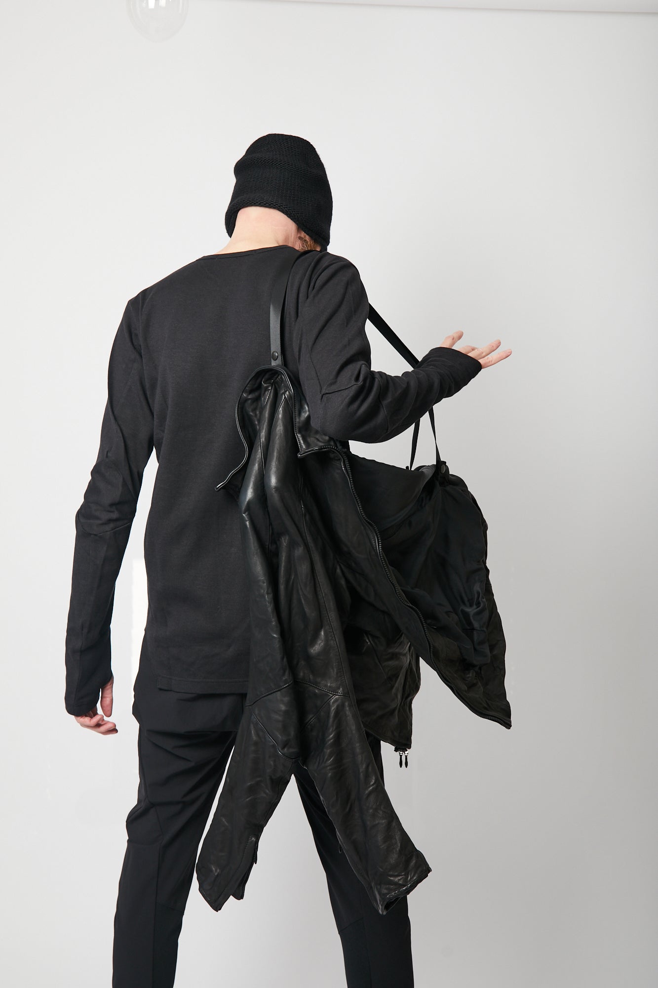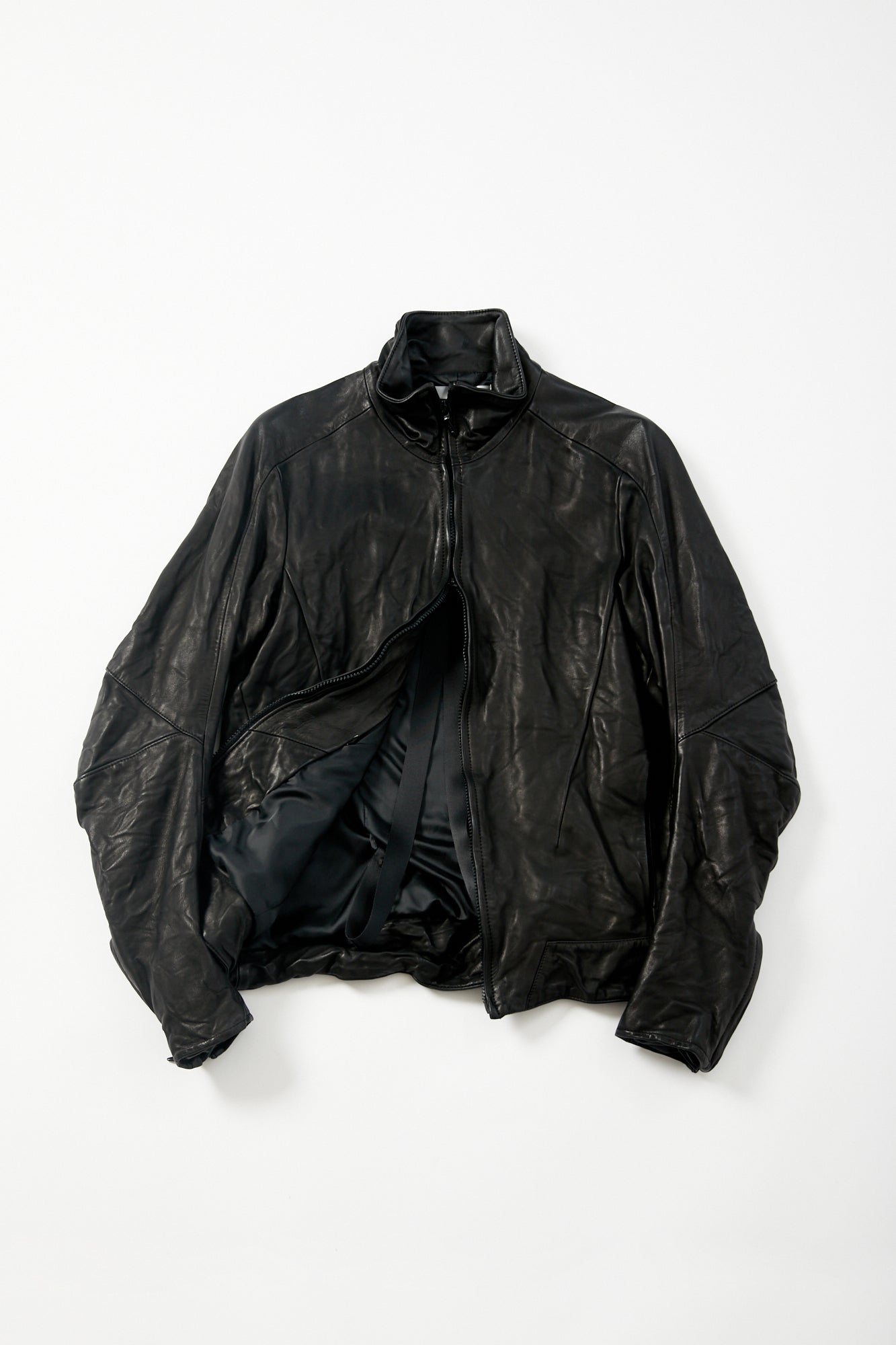 肘関節部分にシャープな印象を与える直線的なラインの襠を挟み込み、肩関節には特殊なアームホールを採用する事で、肩から肘にかけて運動量の多い関節部分の動きに合わせたカッティングが高い可動性を実現しました。 フロントファスナーには、日本が世界に誇るファスナーメーカーYKKのトップオープンファスナーを採用しています。 トップオープンファスナーとは緊急時や素早い対応が必要なときに、スライダーを下げなくても開けられるファスナーで、YKKの高い技術力が可能にした高機能ファスナーです。 レザージャケットでは珍しいショルダーベルトが備えられ、バックパックやショルダーバッグの様に背負えるので、気温や体温の変化でジャケットを脱いだ際も手が塞がることはありません。 10年積み重ねてきた独自のデザインやギミックを詰め込み、熟練の職人が1から10までオートクチュールの様に仕上げた希少性の高い一着です。