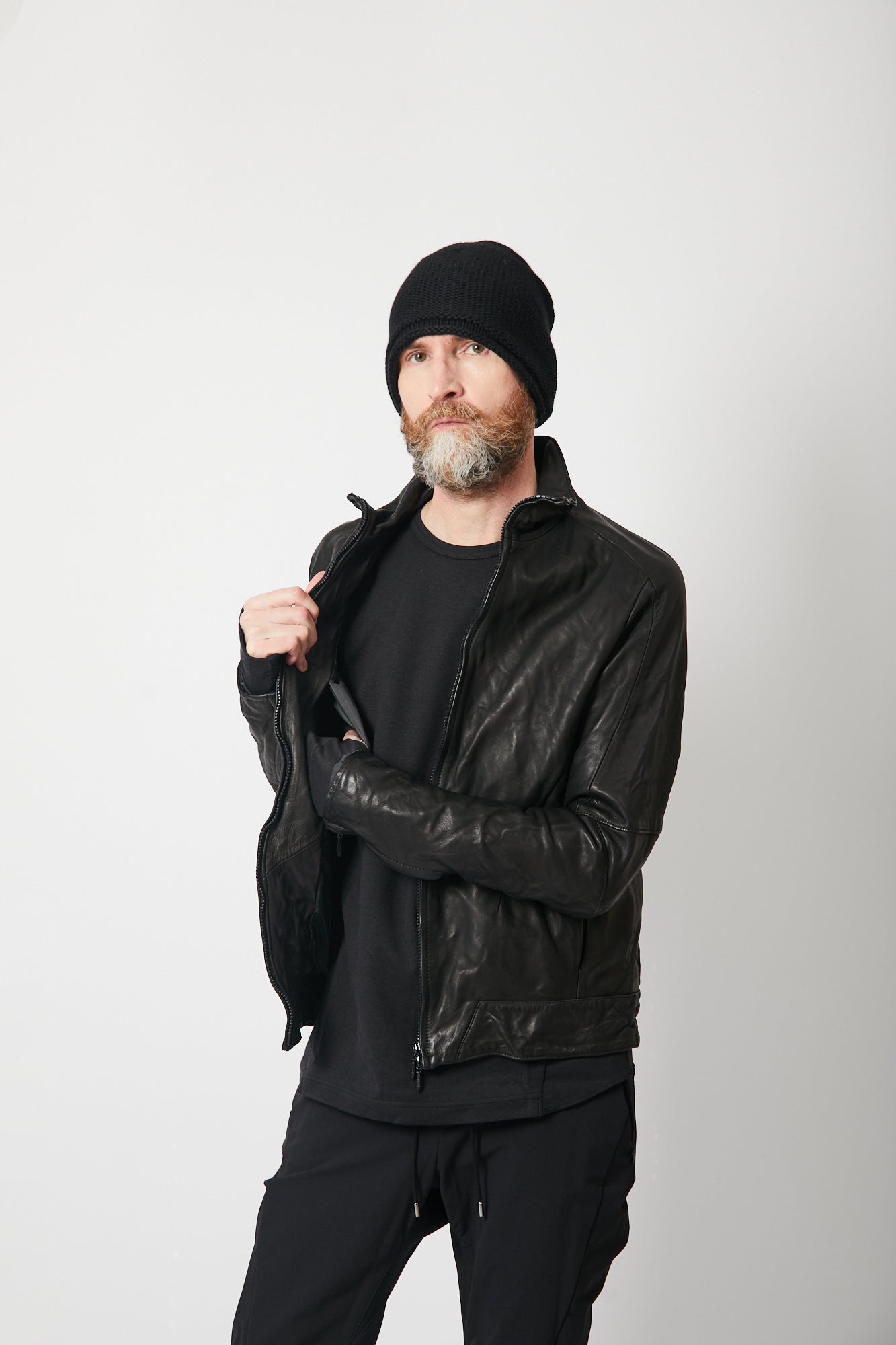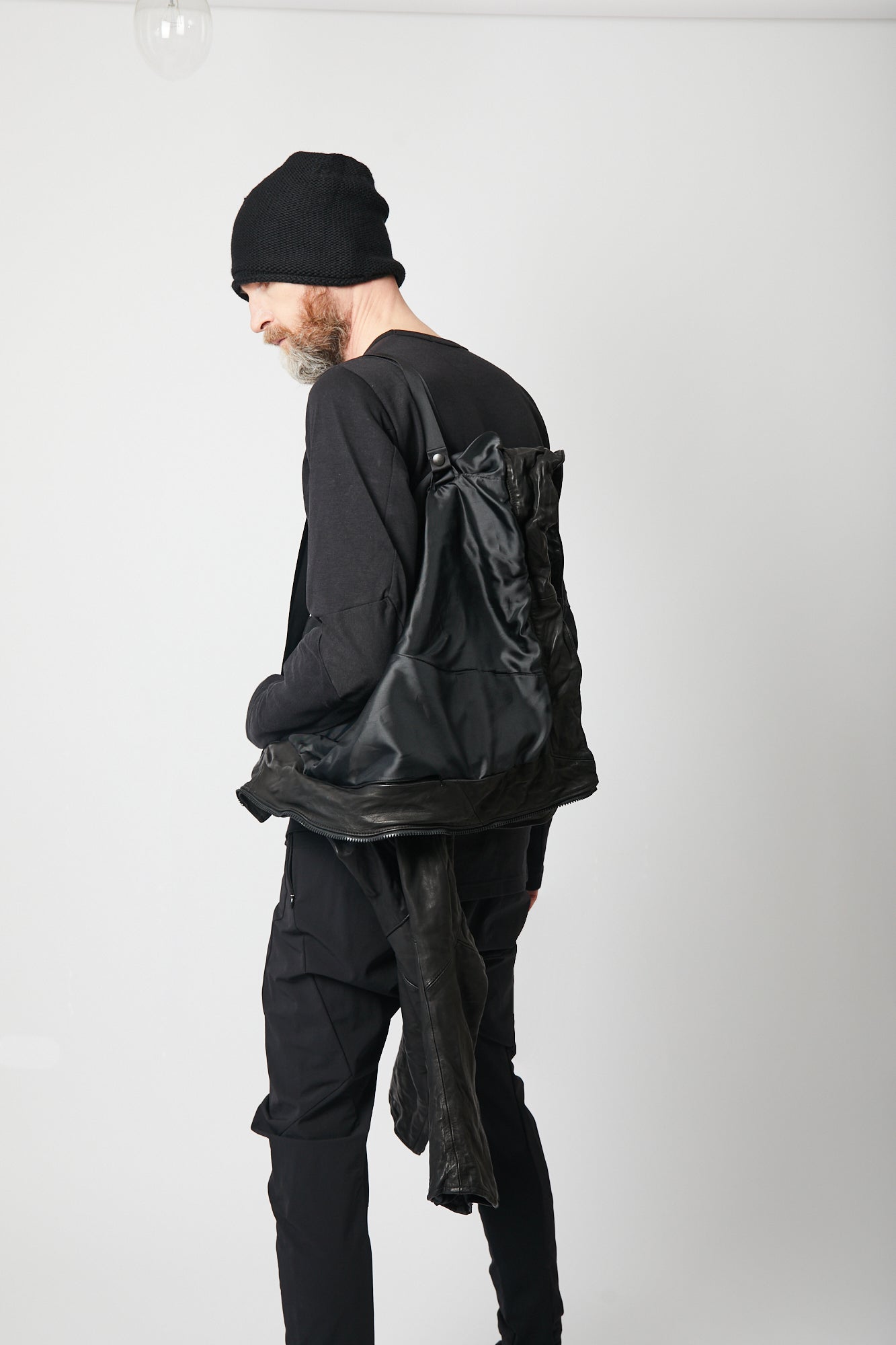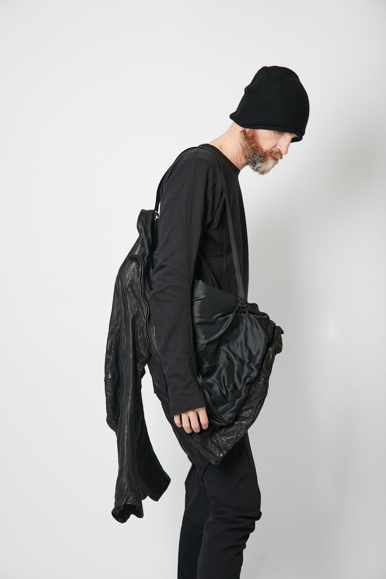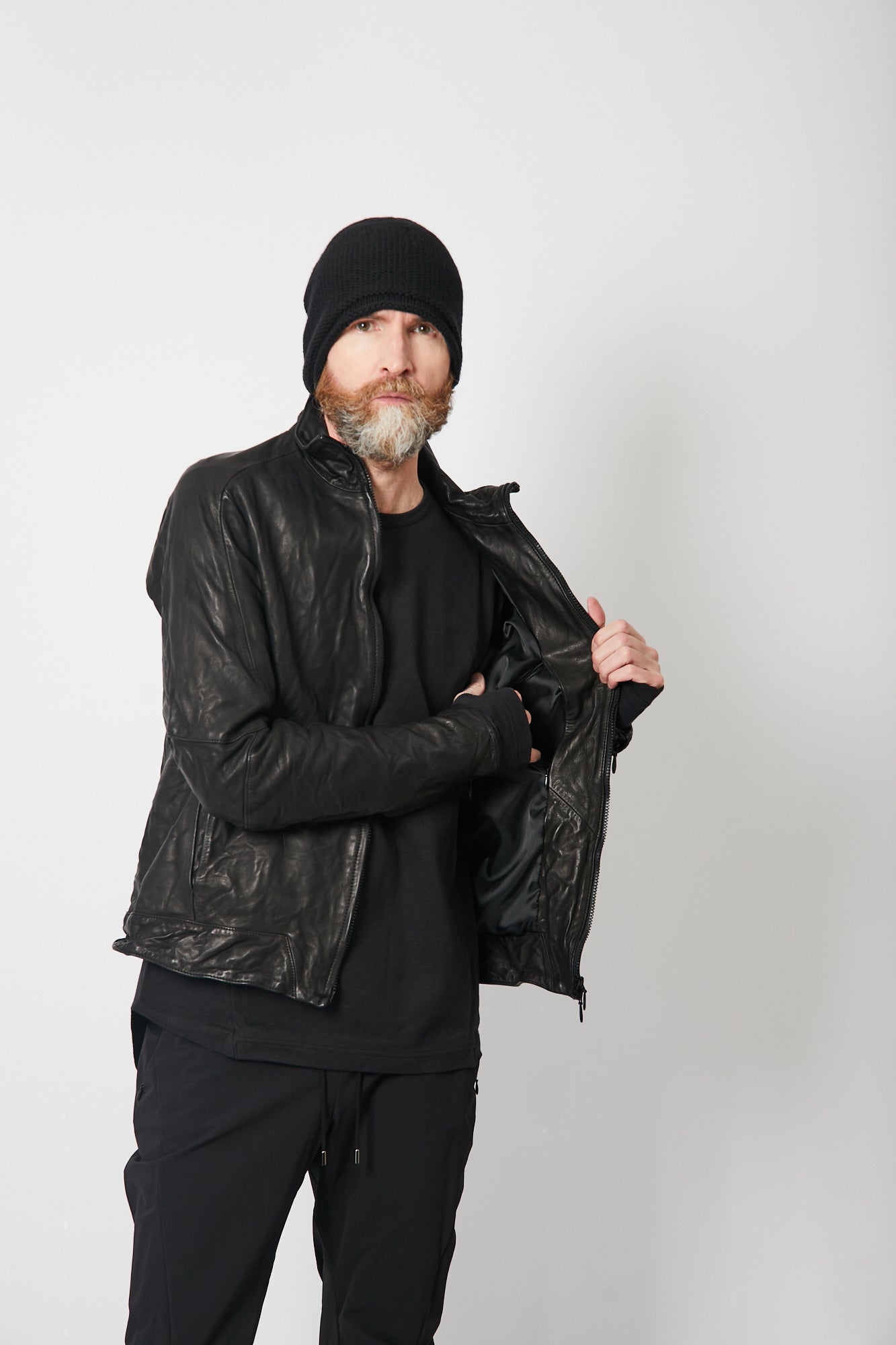 肘関節部分にシャープな印象を与える直線的なラインの襠を挟み込み、肩関節には特殊なアームホールを採用する事で、肩から肘にかけて運動量の多い関節部分の動きに合わせたカッティングが高い可動性を実現しました。 フロントファスナーには、日本が世界に誇るファスナーメーカーYKKのトップオープンファスナーを採用しています。 トップオープンファスナーとは緊急時や素早い対応が必要なときに、スライダーを下げなくても開けられるファスナーで、YKKの高い技術力が可能にした高機能ファスナーです。 レザージャケットでは珍しいショルダーベルトが備えられ、バックパックやショルダーバッグの様に背負えるので、気温や体温の変化でジャケットを脱いだ際も手が塞がることはありません。 10年積み重ねてきた独自のデザインやギミックを詰め込み、熟練の職人が1から10までオートクチュールの様に仕上げた希少性の高い一着です。