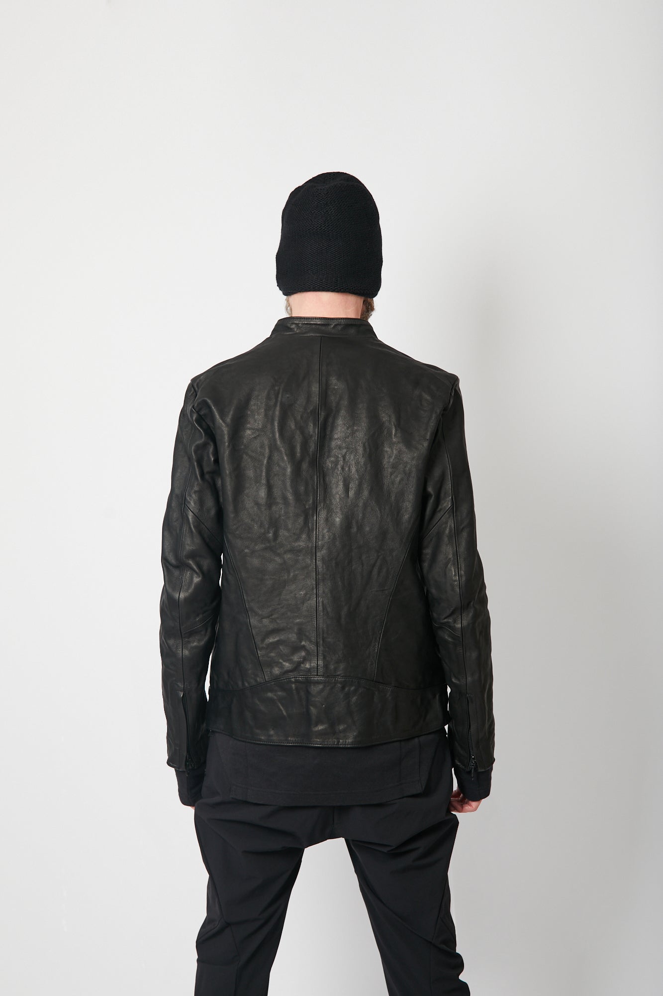 オイルを含み非常にしなやかで、縫製後に水を通しているのでその際に革が縮み強い弾力が生まれ、袖を通した時のフィット感は独特なものがあります。