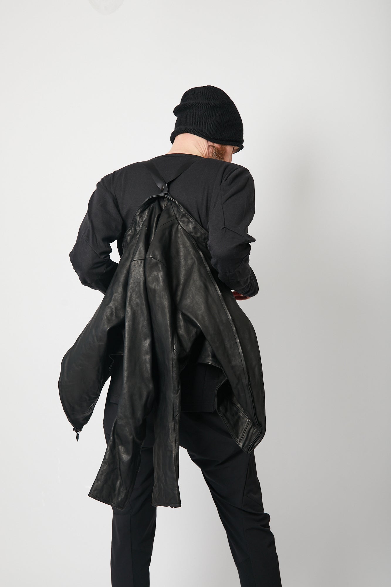 レザージャケットでは珍しいショルダーベルトが備えられ、バックパックやショルダーバッグの様に背負えるので、気温や体温の変化でジャケットを脱いだ際も手が塞がることはありません。